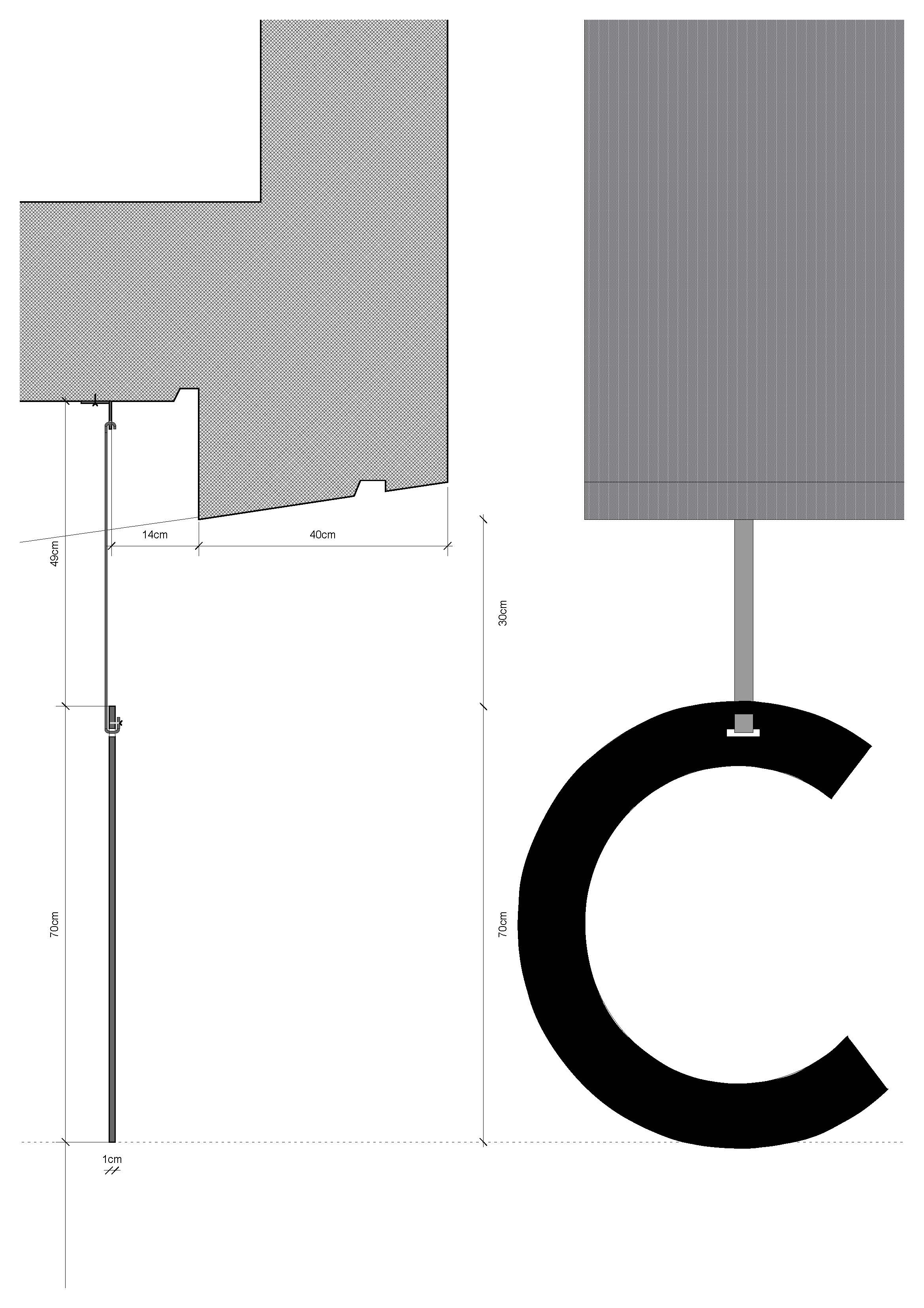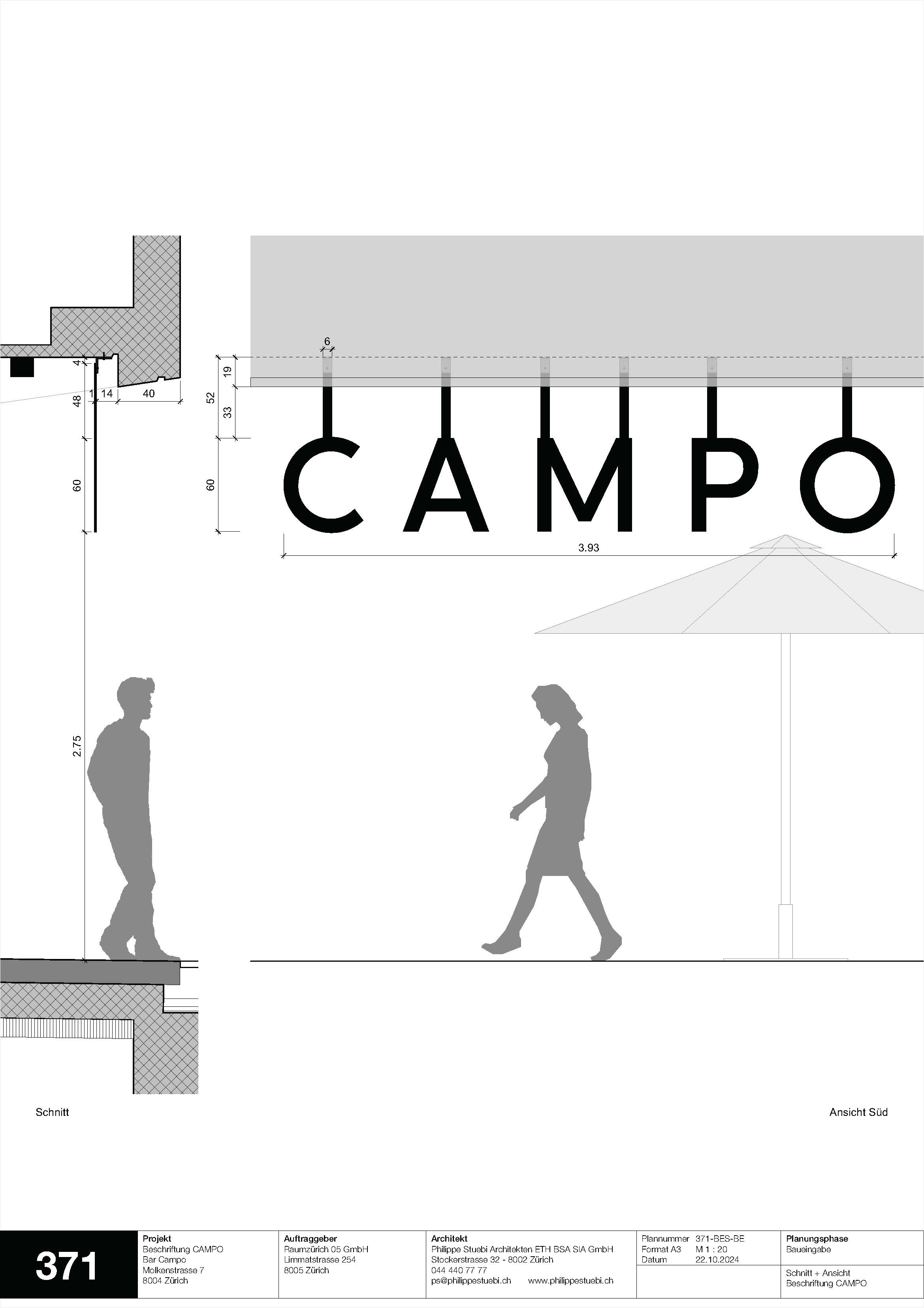 Schriftzug aussen "CAMPO" herabhängend, 2024